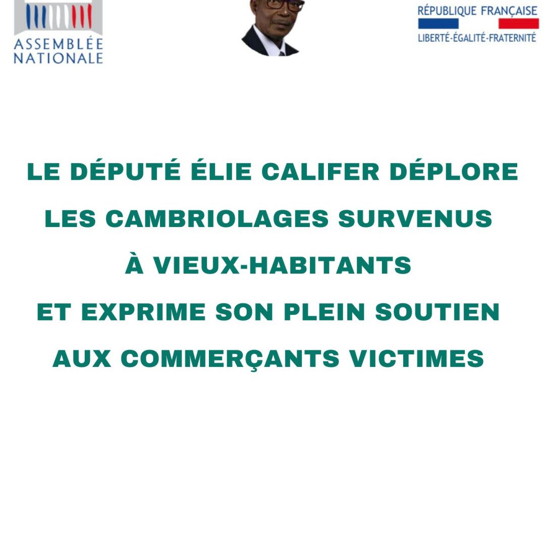 Le Député Élie CALIFER a appris avec préoccupation les cambriolages survenus dans la nuit du lundi 29 au mardi 30 décembre, ayant touché plusieurs établissements de restauration situés sur la plage de Simaho, à Vieux-Habitants.